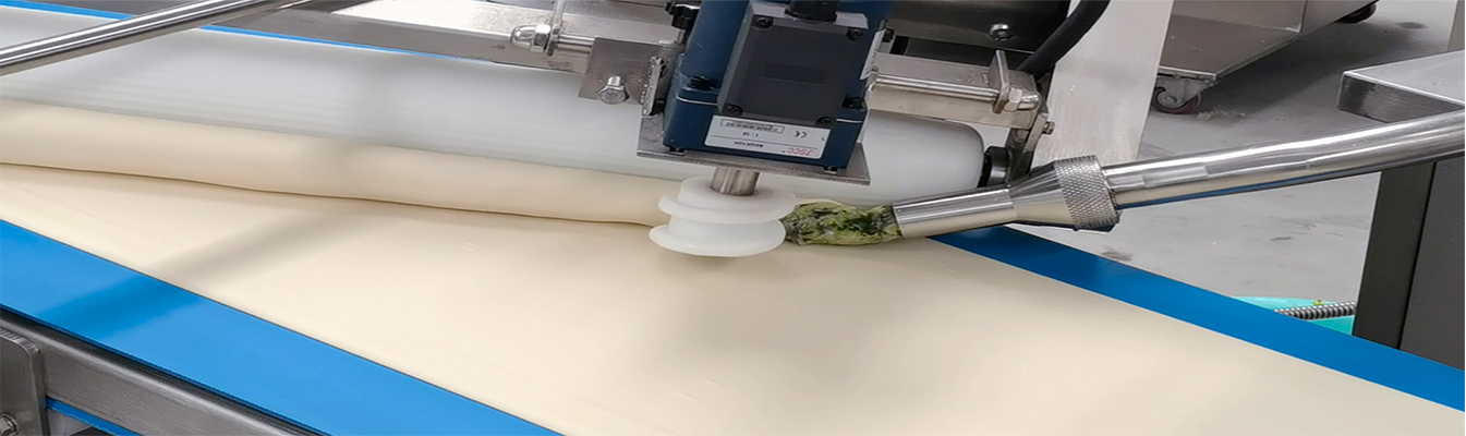 雙排包子生產(chǎn)線運(yùn)用多項(xiàng)先進(jìn)技術(shù)集合了光電感應(yīng)、電磁感應(yīng)、伺服定位系統(tǒng)、人機(jī)界面、微電腦編程。自動(dòng)化程度高,不需人工輔助完成不間斷生產(chǎn) 產(chǎn)量翻倍。